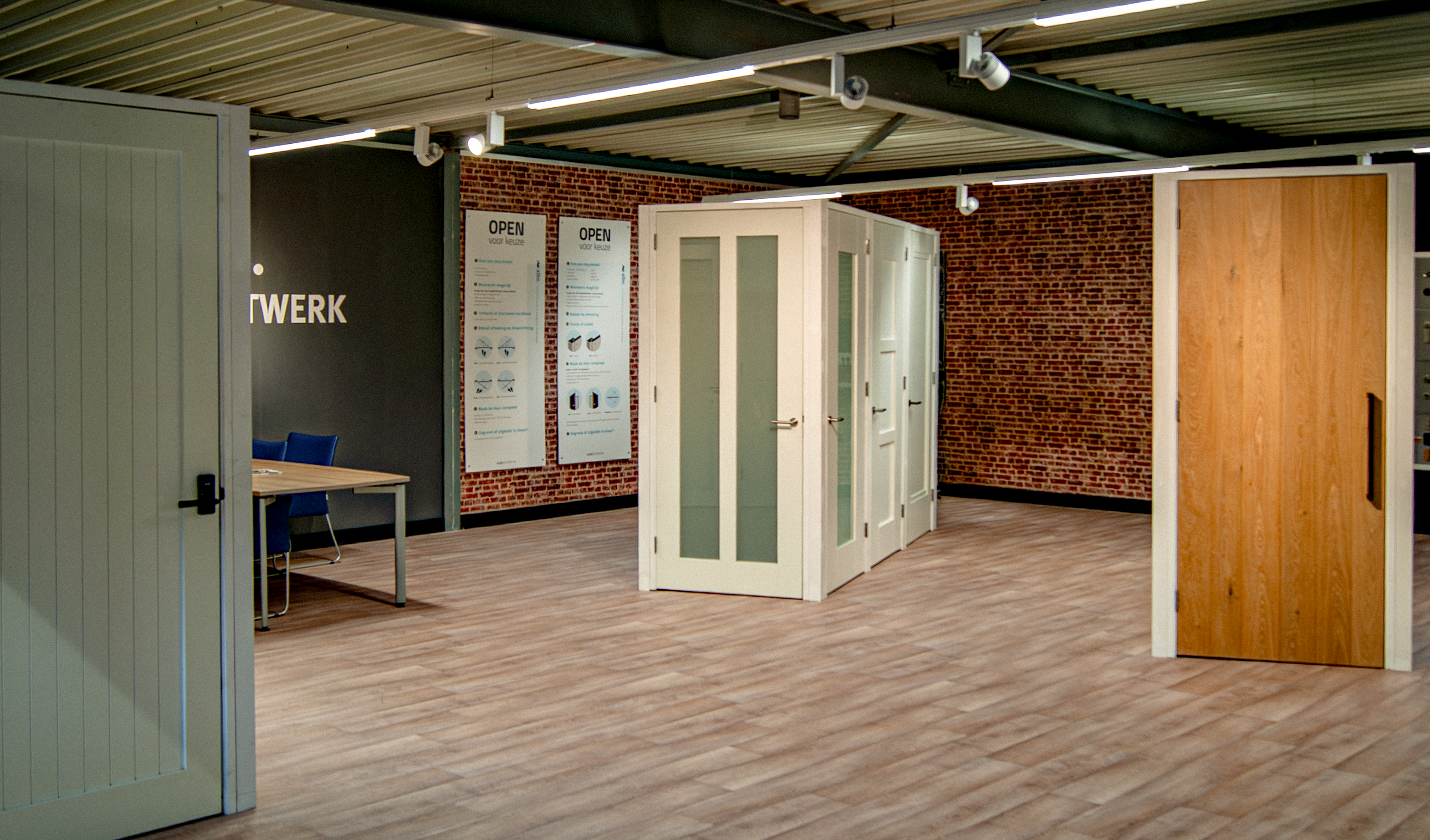 In onze showroom ontdekt u een uitgebreid aanbod aan deuren voor zowel binnen als buiten – passend bij elke stijl en smaak. Van moderne, strakke ontwerpen tot klassieke, tijdloze modellen: wij hebben de juiste deur voor elk project. Onze deskundige adviseurs helpen u graag bij het vinden van de perfecte combinatie van stijl, materiaal en functionaliteit. U bent van harte welkom voor persoonlijk advies, een compleet overzicht van onze binnendeuren, buitendeuren, stalen deuren en meer — én natuurlijk voor een lekker kopje koffie.